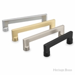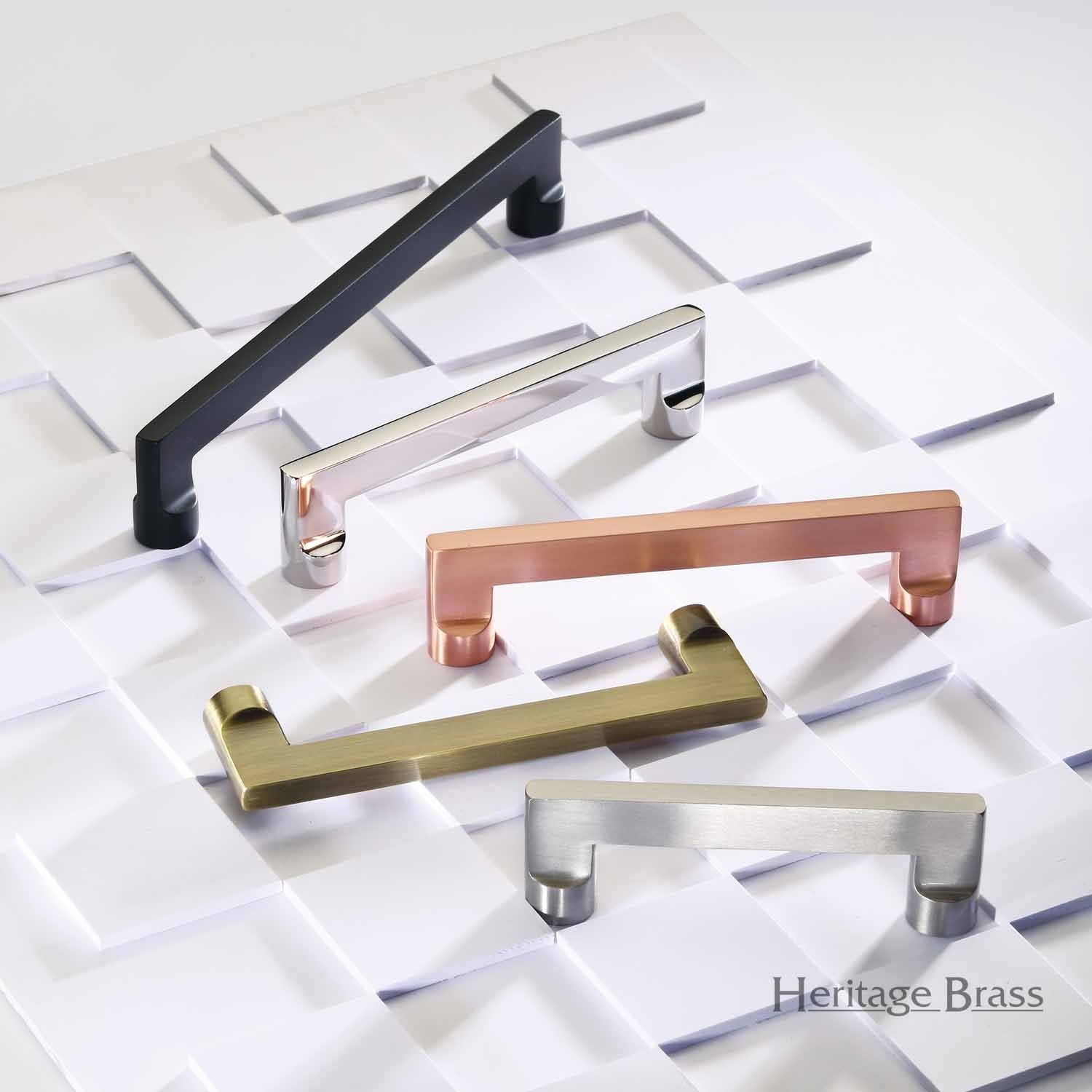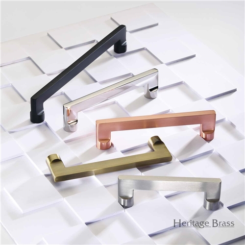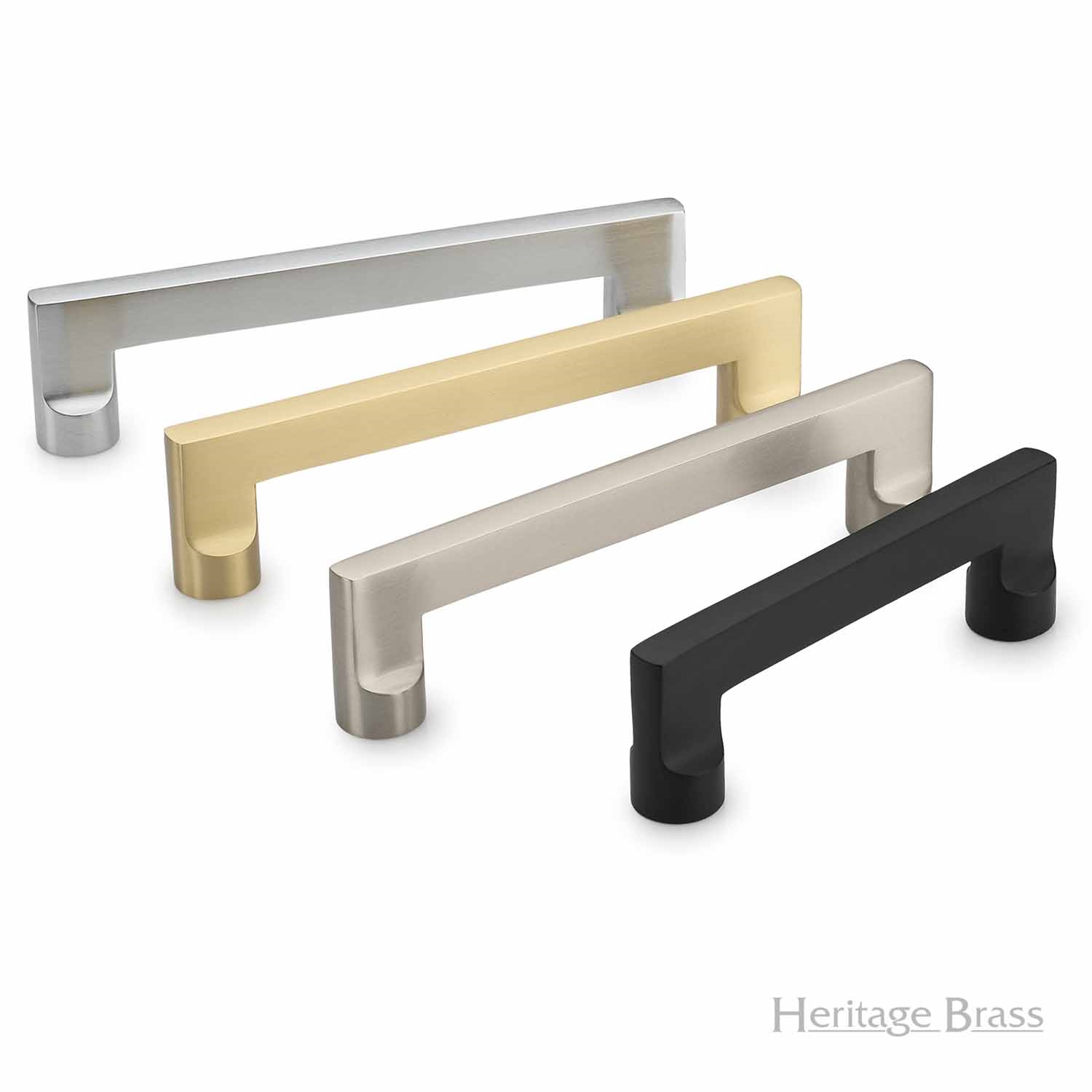 A sleek and slim rectangular bar handle on round bases with concealed fixings, perfect for modern and classic décor