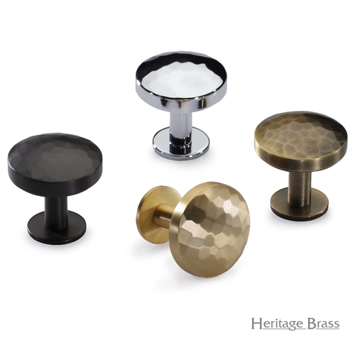 An intricate handmade cabinet knob. The hand-beaten brass catches the light at varying angles and enhances the unique beauty of the cabinet knob.