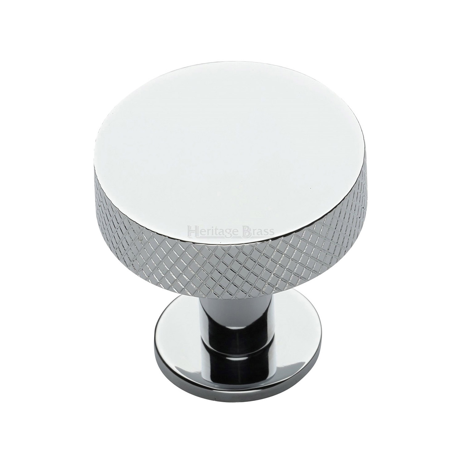 A disc shaped cabinet knob with intricate knurled detailing along the edge. The knurled design adds a tactile element to this simple yet elegant cabinet knob. Can be paired with many products from the Heritage Brass Signac Collection