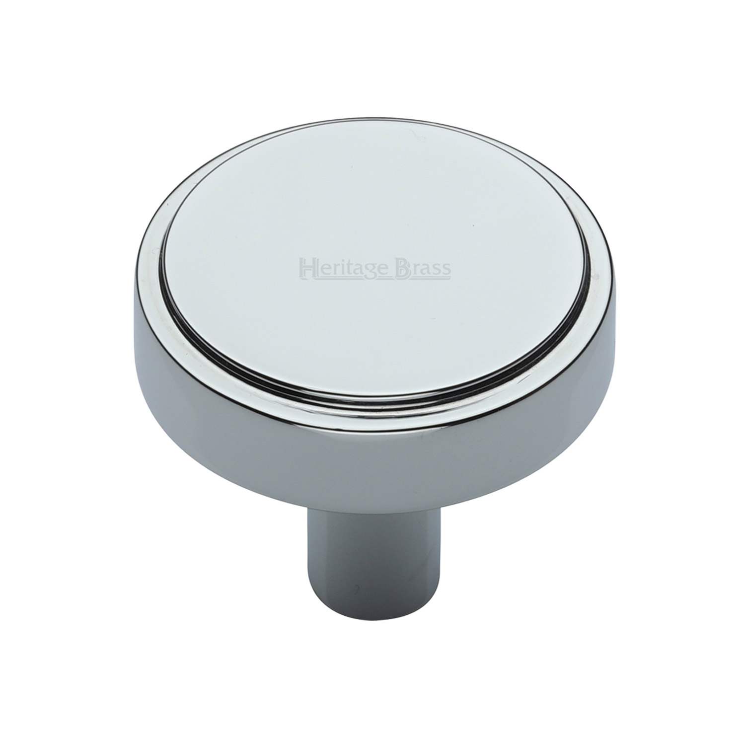 Heritage Brass Cabinet Knob Stepped Disc Design 38mm Polished Chrome finish