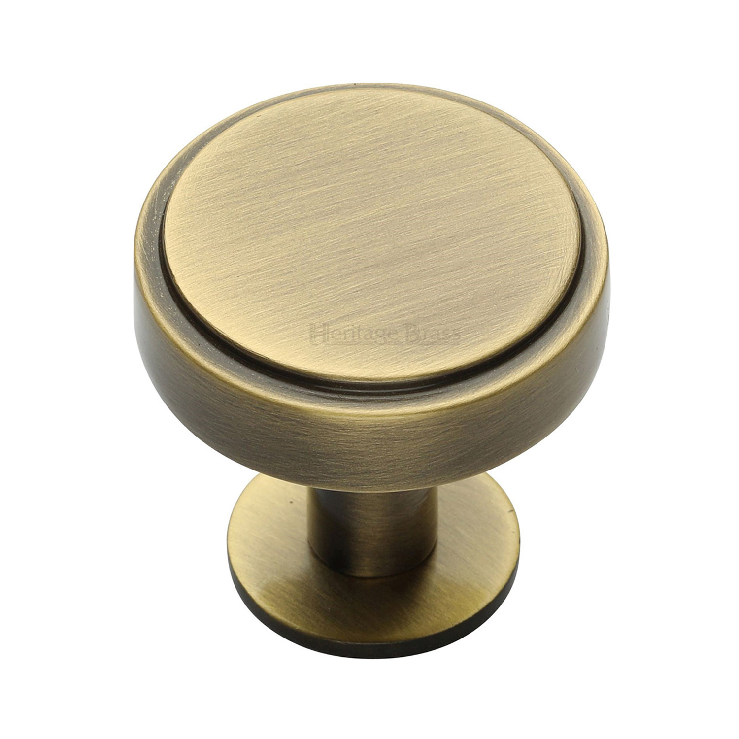 An elegant round cabinet knob with art deco stepped detailing. Can be paired with many products from the Heritage Brass Art Deco Collection