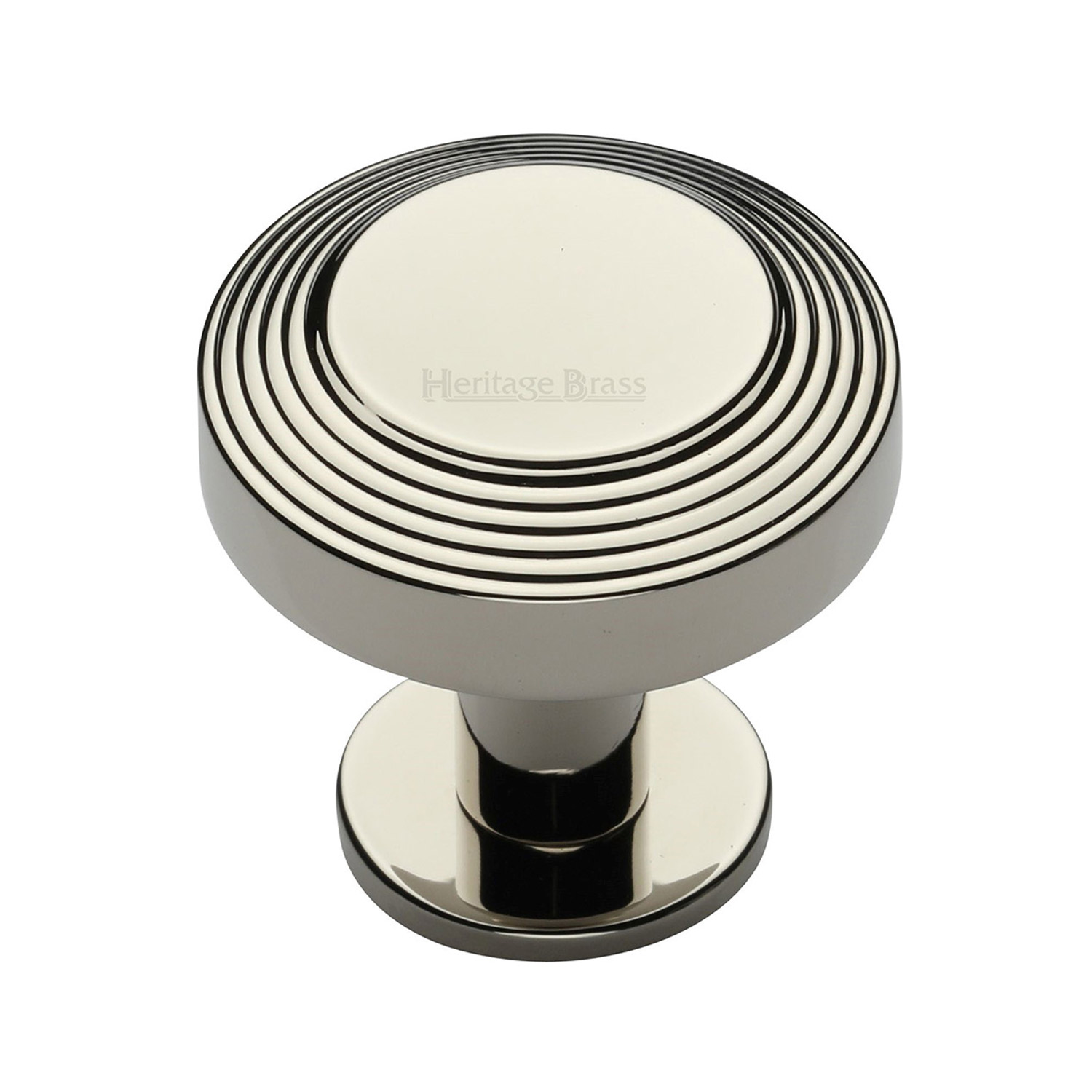 Heritage Brass Cabinet Knob Ridge Design with Rose 38mm Polished Nickel finish