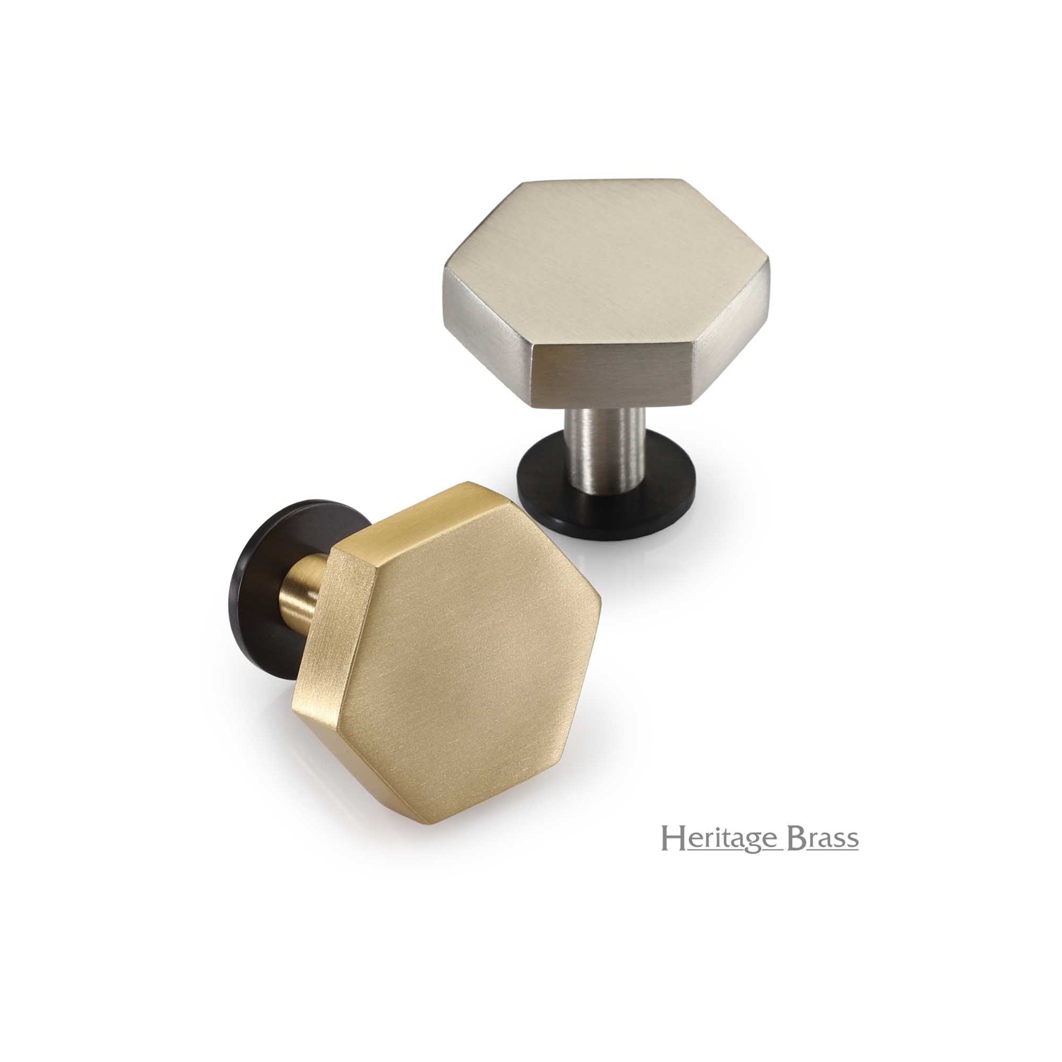 Heritage Brass Cabinet Knob Hexagon Design with Rose 38mm Polished Chrome finish