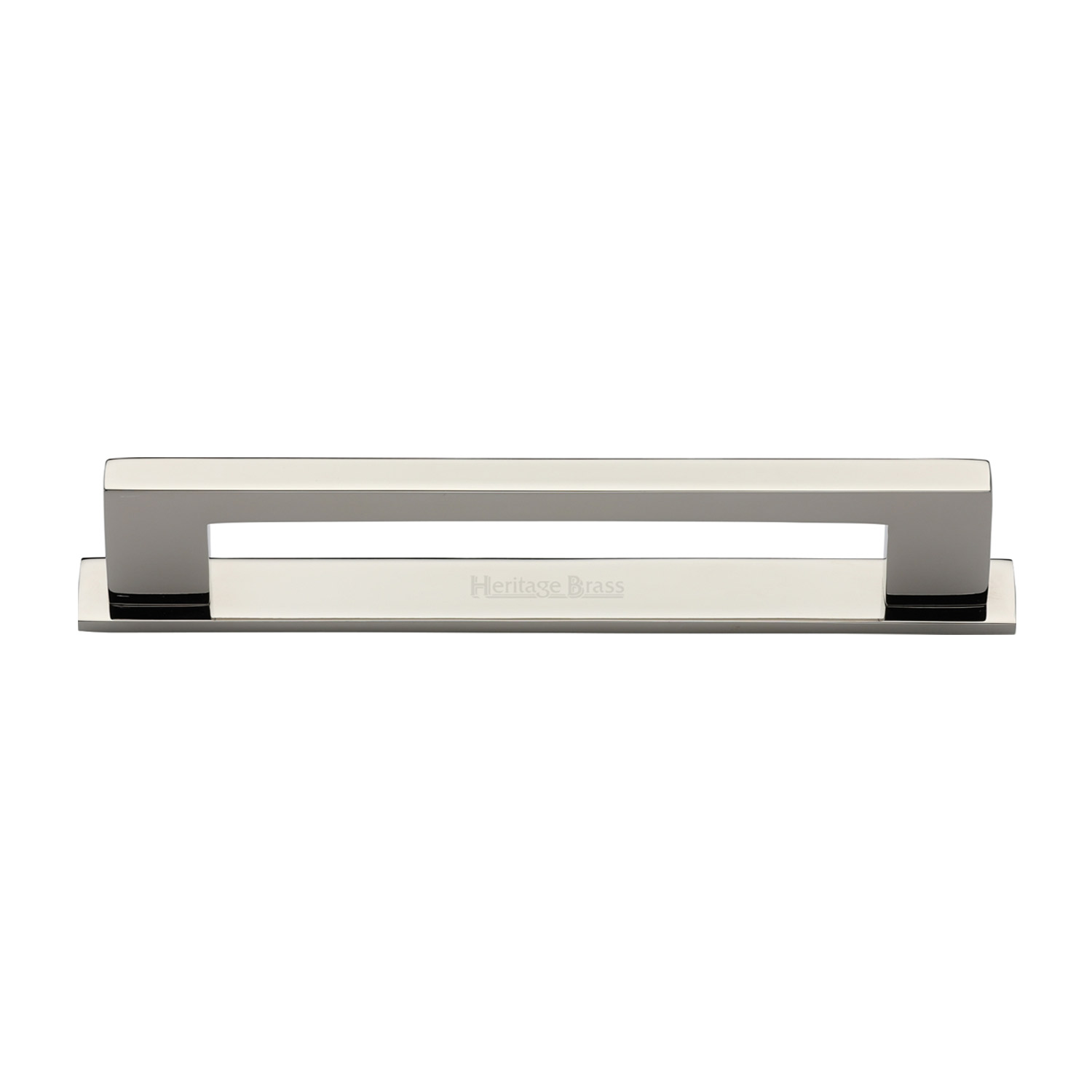 Heritage Brass Cabinet Pull Metro Design with Plate 160mm CTC Polished Nickel Finish