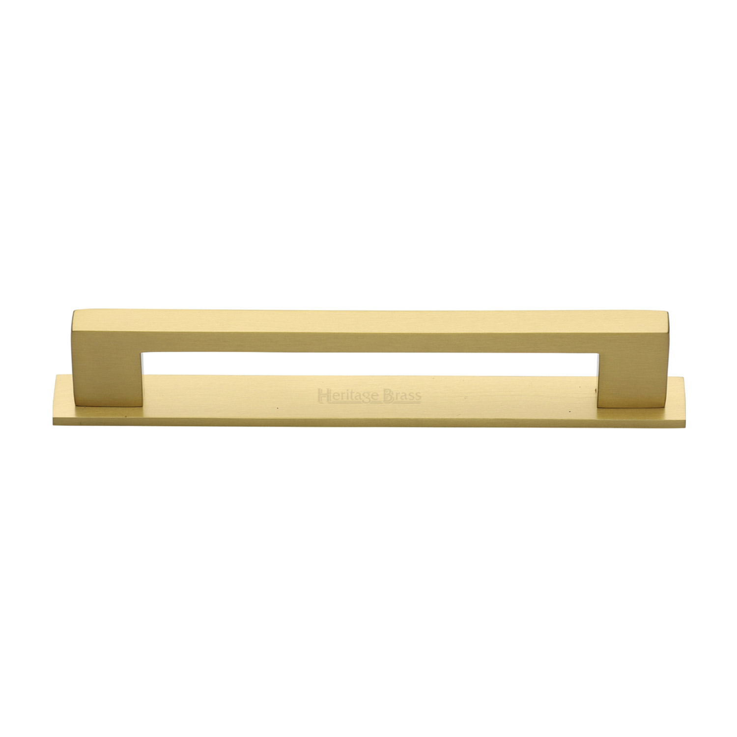 Heritage Brass Cabinet Pull Metro Design with Plate 160mm CTC Satin Brass Finish
