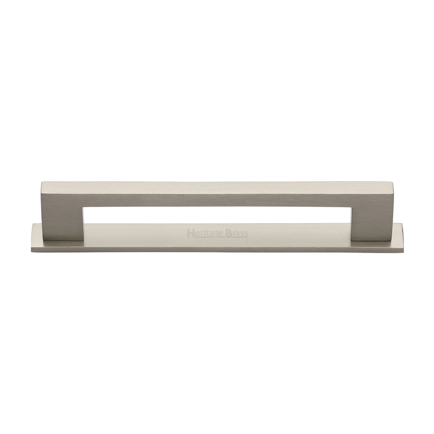 Heritage Brass Cabinet Pull Metro Design with Plate 160mm CTC Satin Nickel Finish