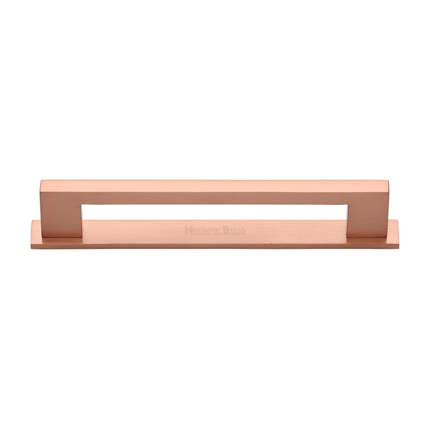 Heritage Brass Cabinet Pull Metro Design with Plate 160mm CTC Satin Rose Gold Finish
