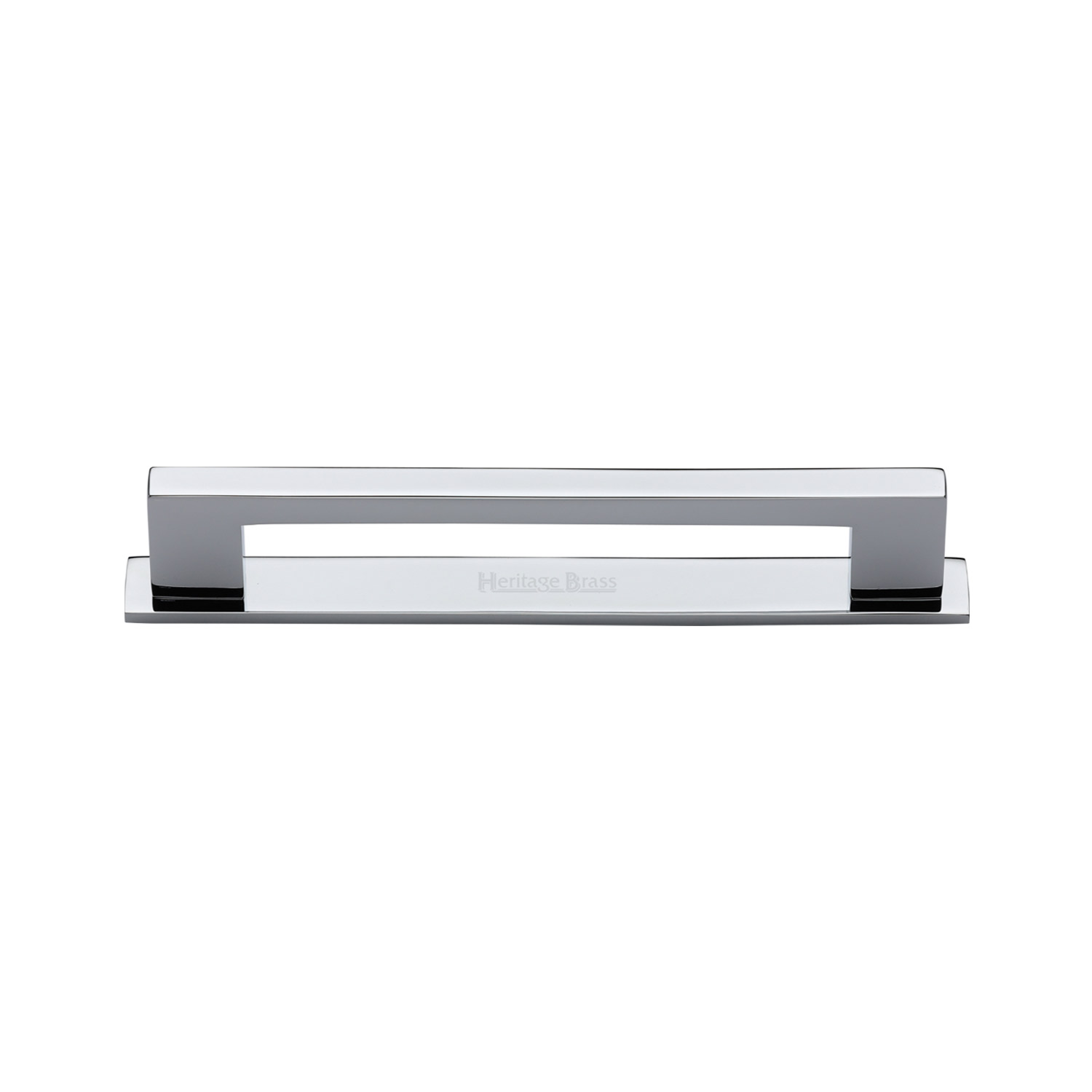 Heritage Brass Cabinet Pull Metro Design with Plate 96mm CTC Polished Chrome Finish