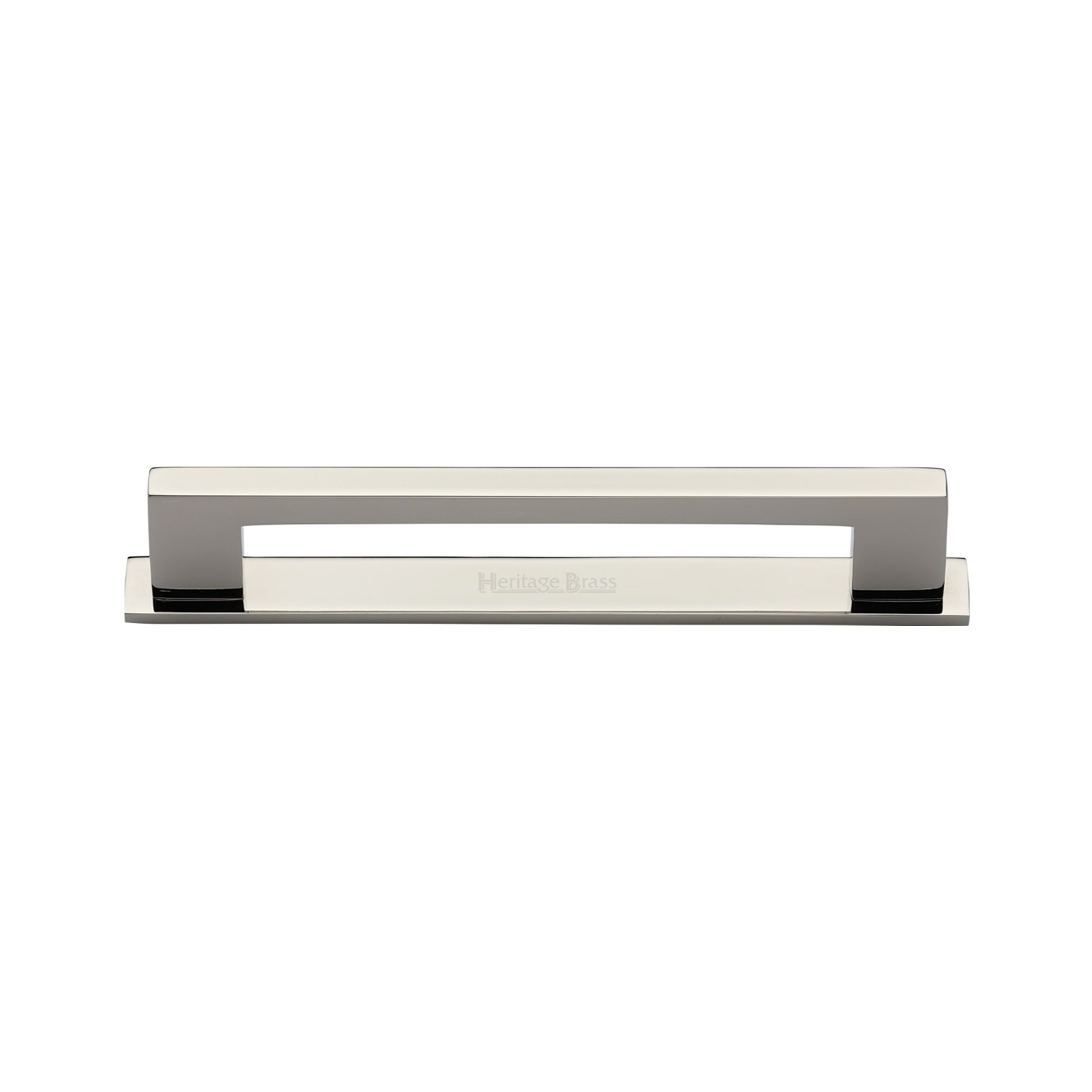 Heritage Brass Cabinet Pull Metro Design with Plate 96mm CTC Polished Nickel Finish