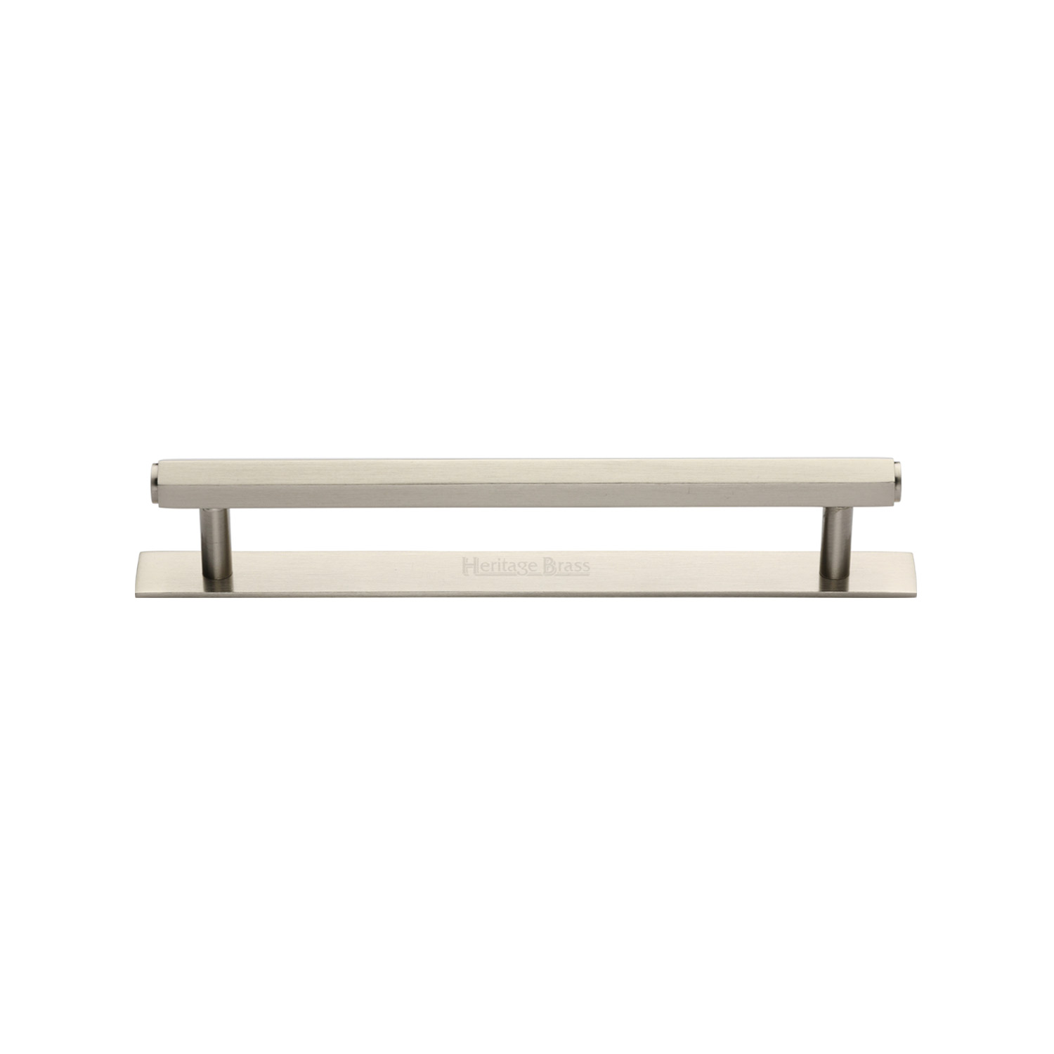 Heritage Brass Cabinet Pull Hexagonal Design with Plate 128mm CTC Satin Nickel Finish