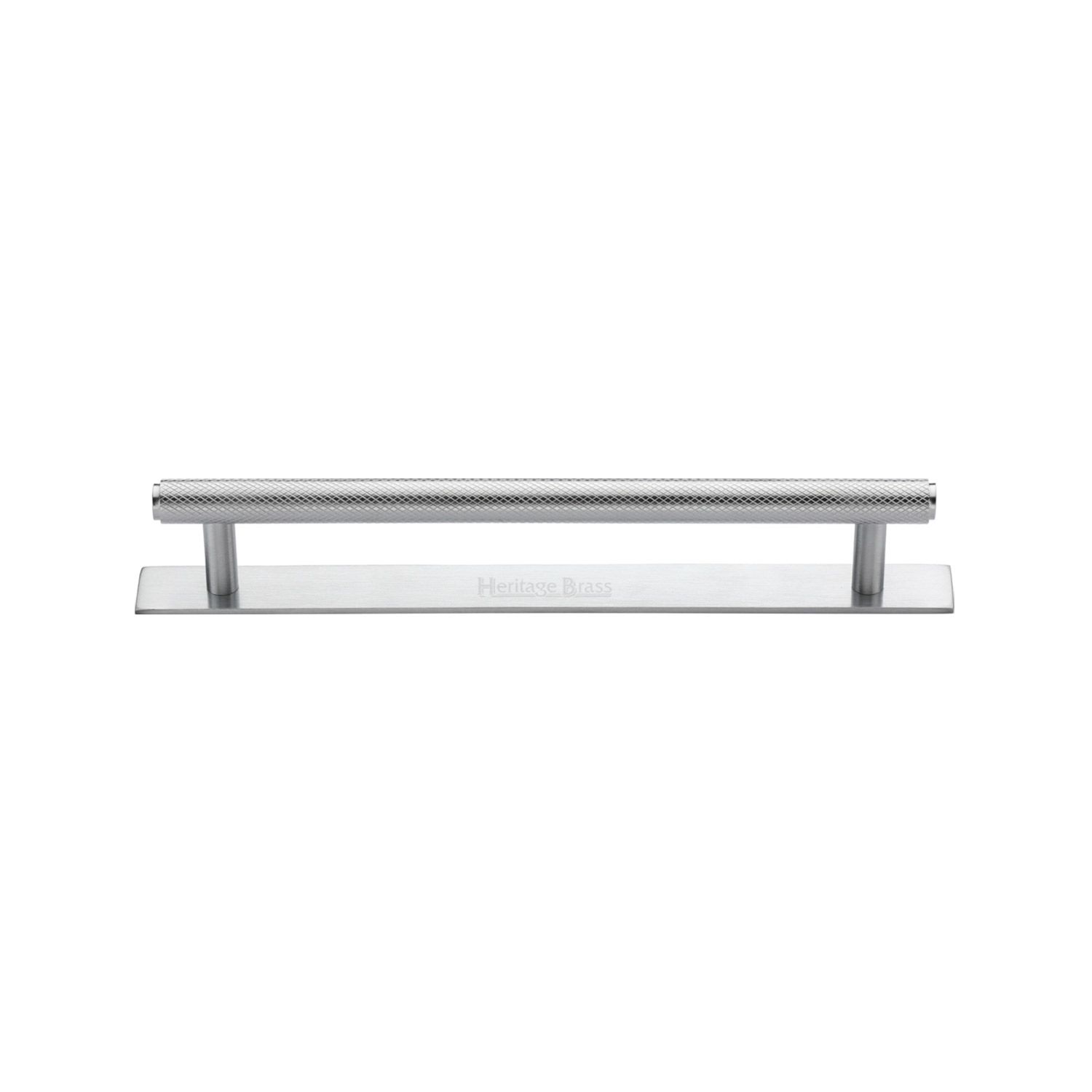 Heritage Brass Cabinet Pull Knurled Design with Plate 128mm CTC Satin Chrome Finish