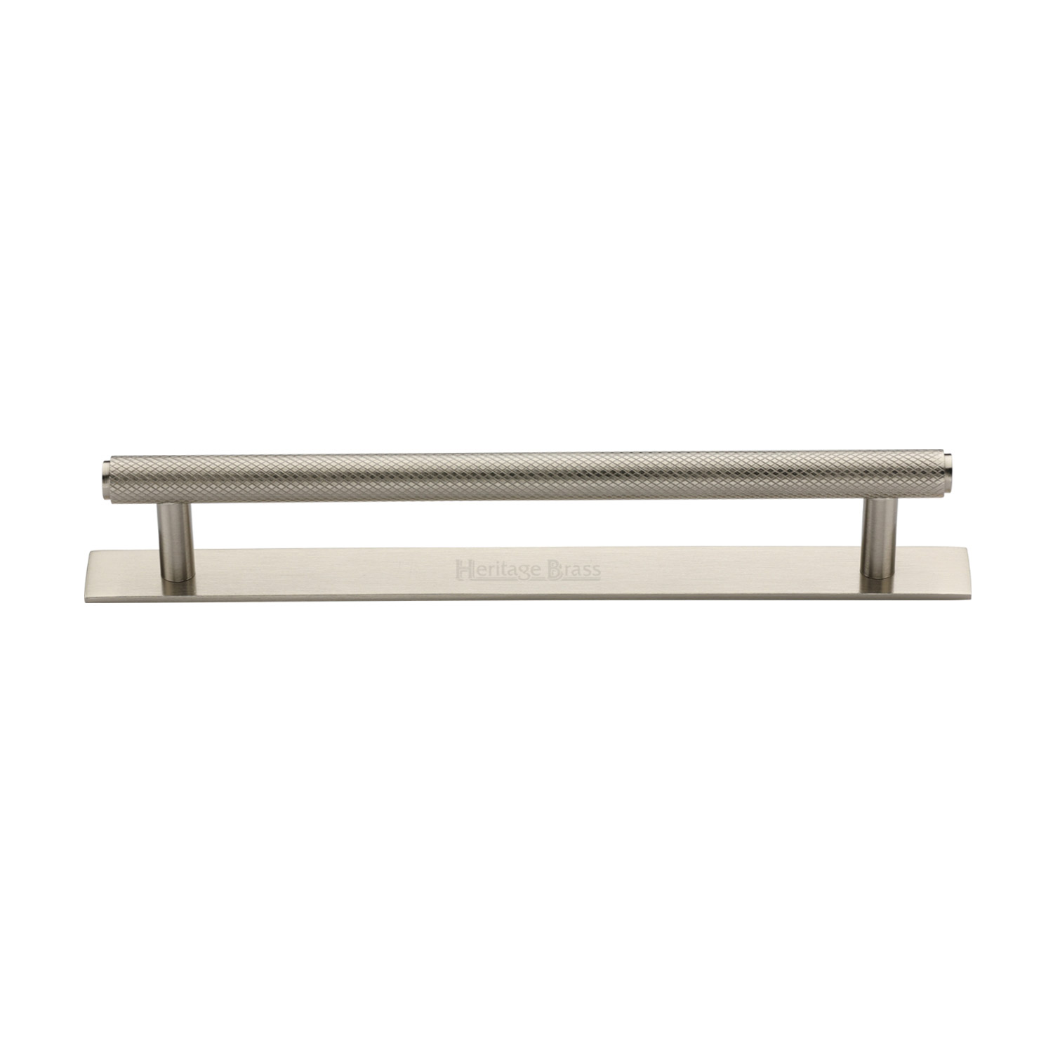 Heritage Brass Cabinet Pull Knurled Design with Plate 160mm CTC Satin Nickel Finish
