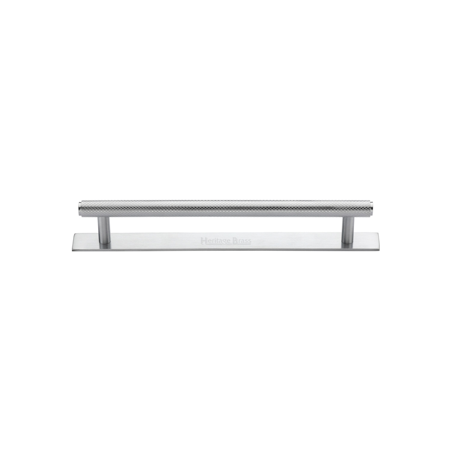 Heritage Brass Cabinet Pull Knurled Design with Plate 96mm CTC Satin Chrome Finish