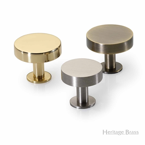 The Disc Cabinet Knob With Base is a proud part of our Heritage Brass Collection. This means it can be effortlessly paired with many other products from the same collection, allowing for a cohesive look throughout your space.