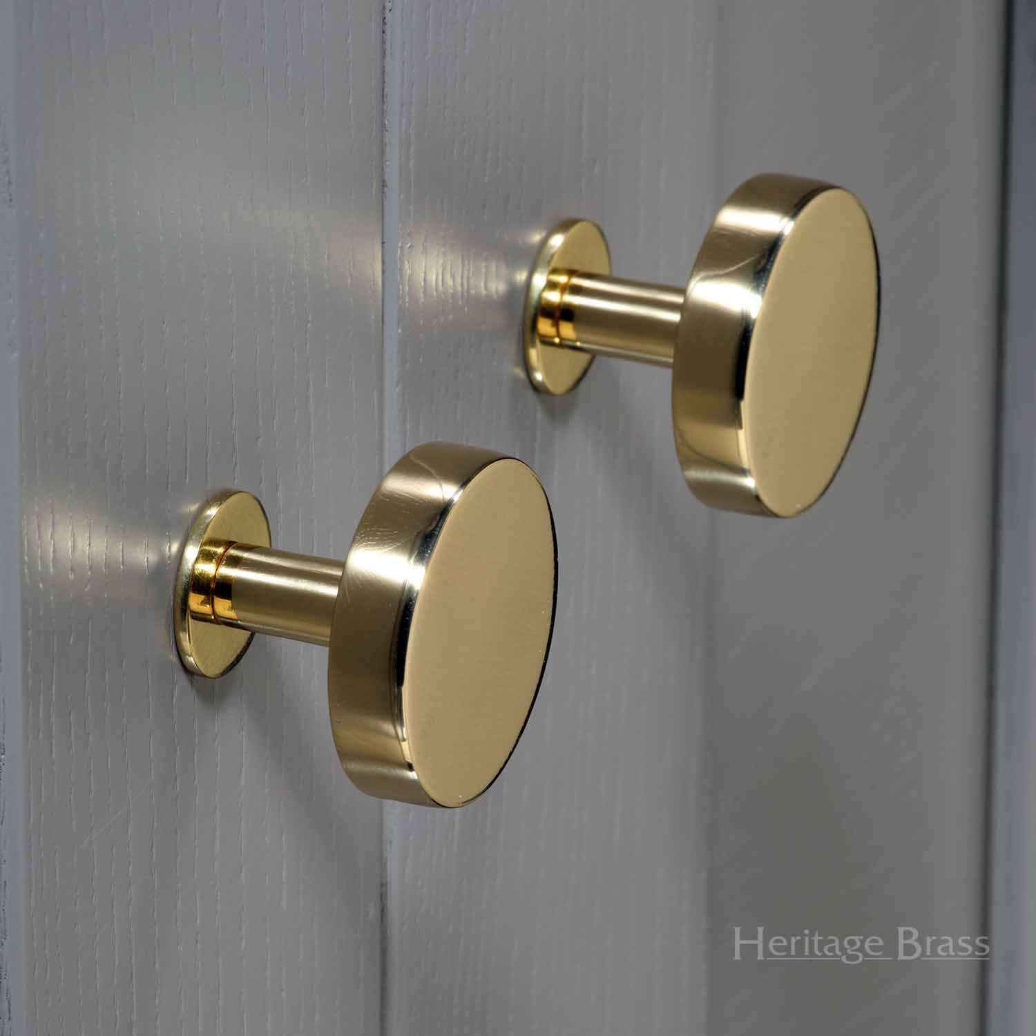 Heritage Brass Cabinet Knob Disc Design with Base 38mm Polished Brass finish