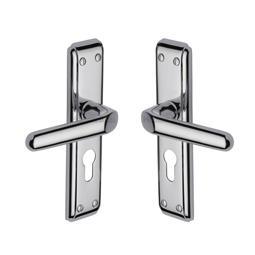 Heritage Brass Door Handle for Euro Profile Plate Deco Design Polished Chrome finish