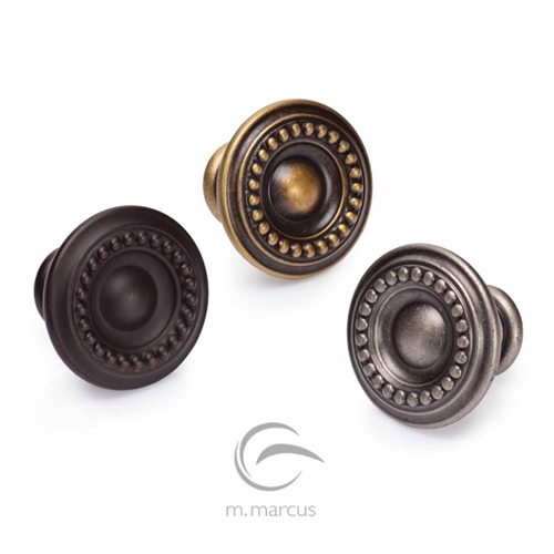 Beaded Round Knob 035mm Distressed Brass on Zinc finish